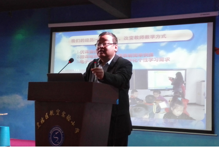 沈阳市皇姑区教育局郭振扬局长针对区域教育信息化发展情况介绍经验。沈阳航空实验小学和教师代表分别做了题为“与智慧亲密接触 ,做未来学习专家——信息技术应用情况介绍”和“智慧教学——构建高效课堂”的经验交流。